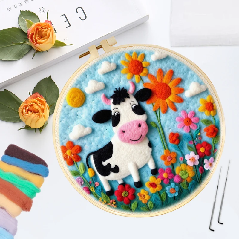 Includes: felting canvas+reference+Multi Wools+1 pc foam workplace+ 3 pcs metal needle+frame